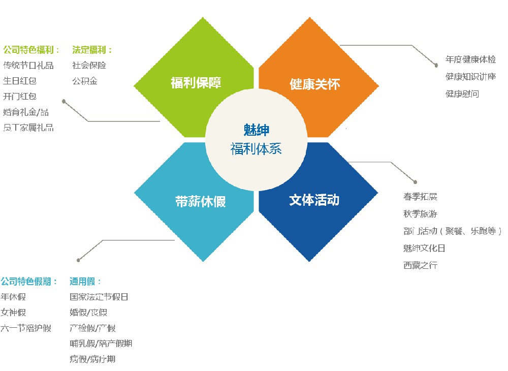 (一)魅绅提供具有外部竞争力和内部公平性的薪酬激励,以短期、中长期激励特殊激励组合实现个人价值和企业价值的统一,并通过人单酬机制实现企业与员工的双赢。(二)薪酬结构:薪酬=基薪+综合补贴+奖金/提成+职务津贴